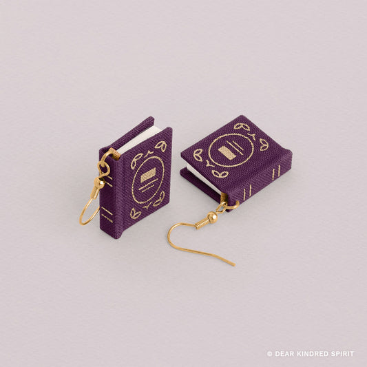 Miniature Book Earrings | Plum Purple with Enchanted Cover