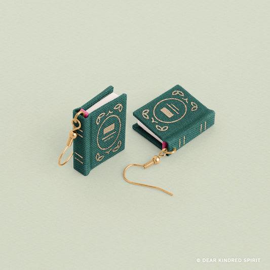 Miniature Book Earrings | Forest Green with Enchanted Cover