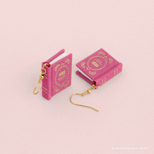 Miniature Book Earrings | Taffy Pink with Enchanted Cover