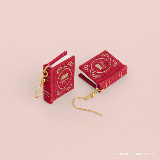 Miniature Book Earrings | Poppy Red with Enchanted Cover