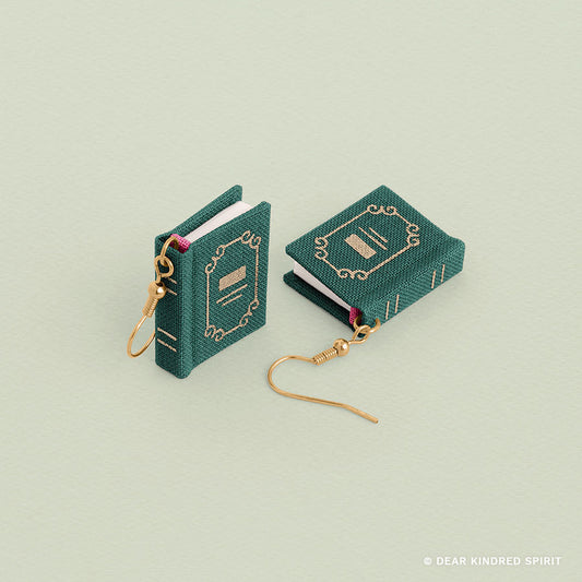Miniature Book Earrings | Forest Green with Enchanted Cover