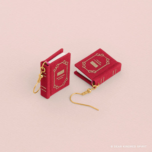 Miniature Book Earrings | Poppy Red with Enchanted Cover