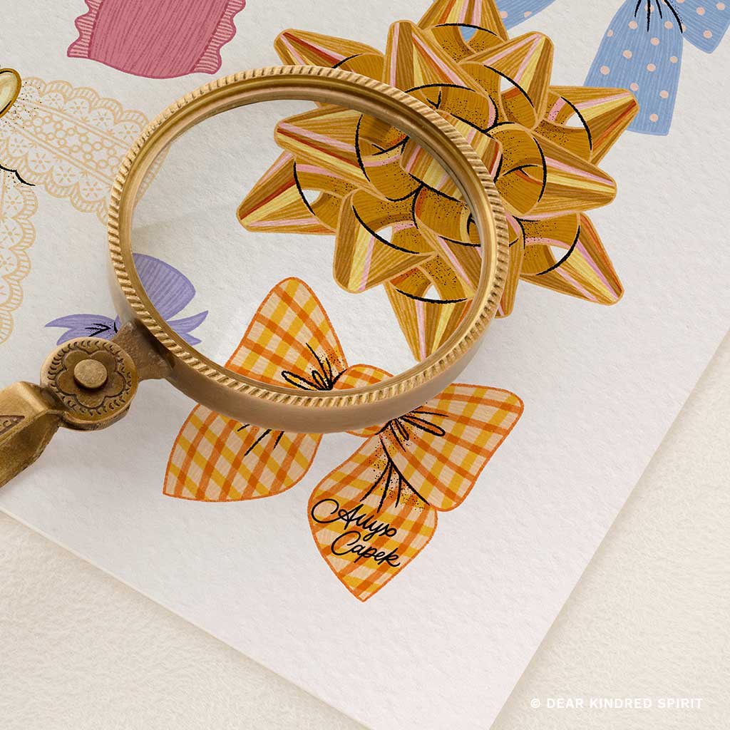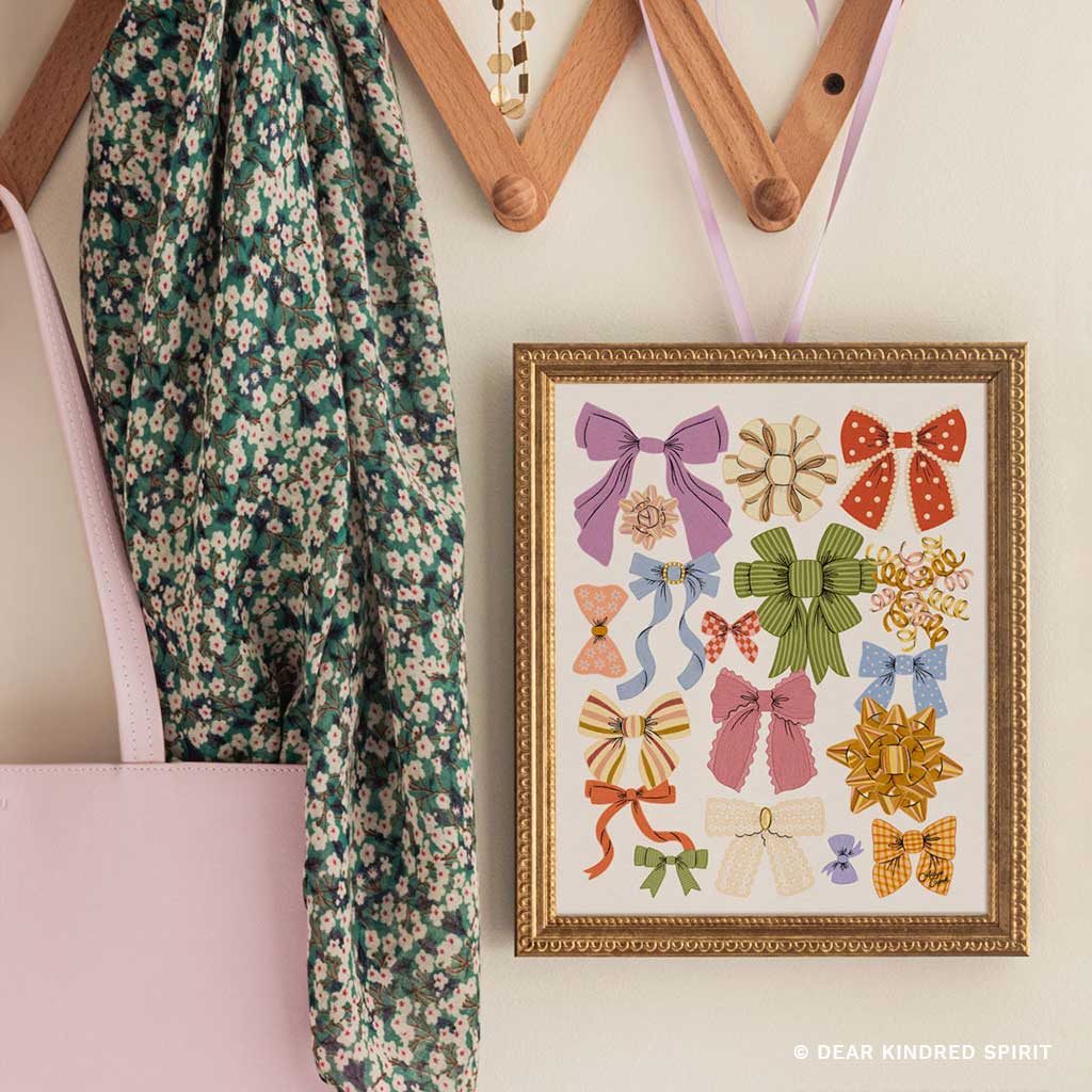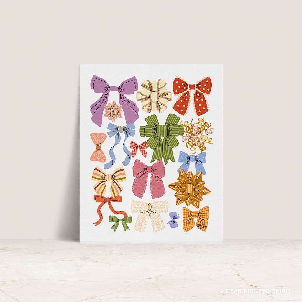 Bring a sense of celebration to any setting with this adorable art print, featuring an array of 18 detailed bows!